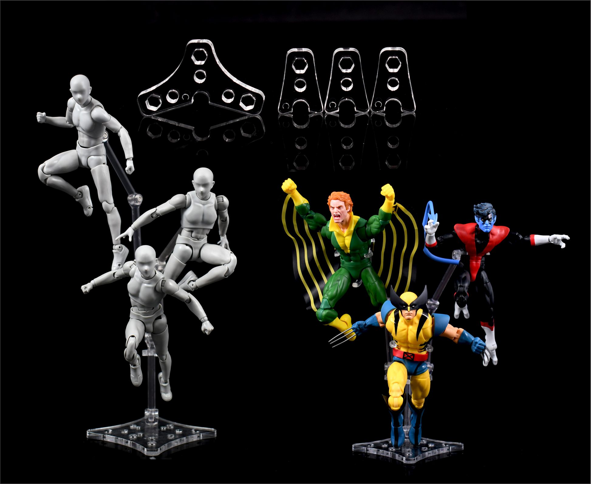 These are great for team shots, fight poses, effect poses, or for positioning figures above other figures in your display. They also help to save shelf space and make figures in the back rows of your display stand out more without the need for risers.