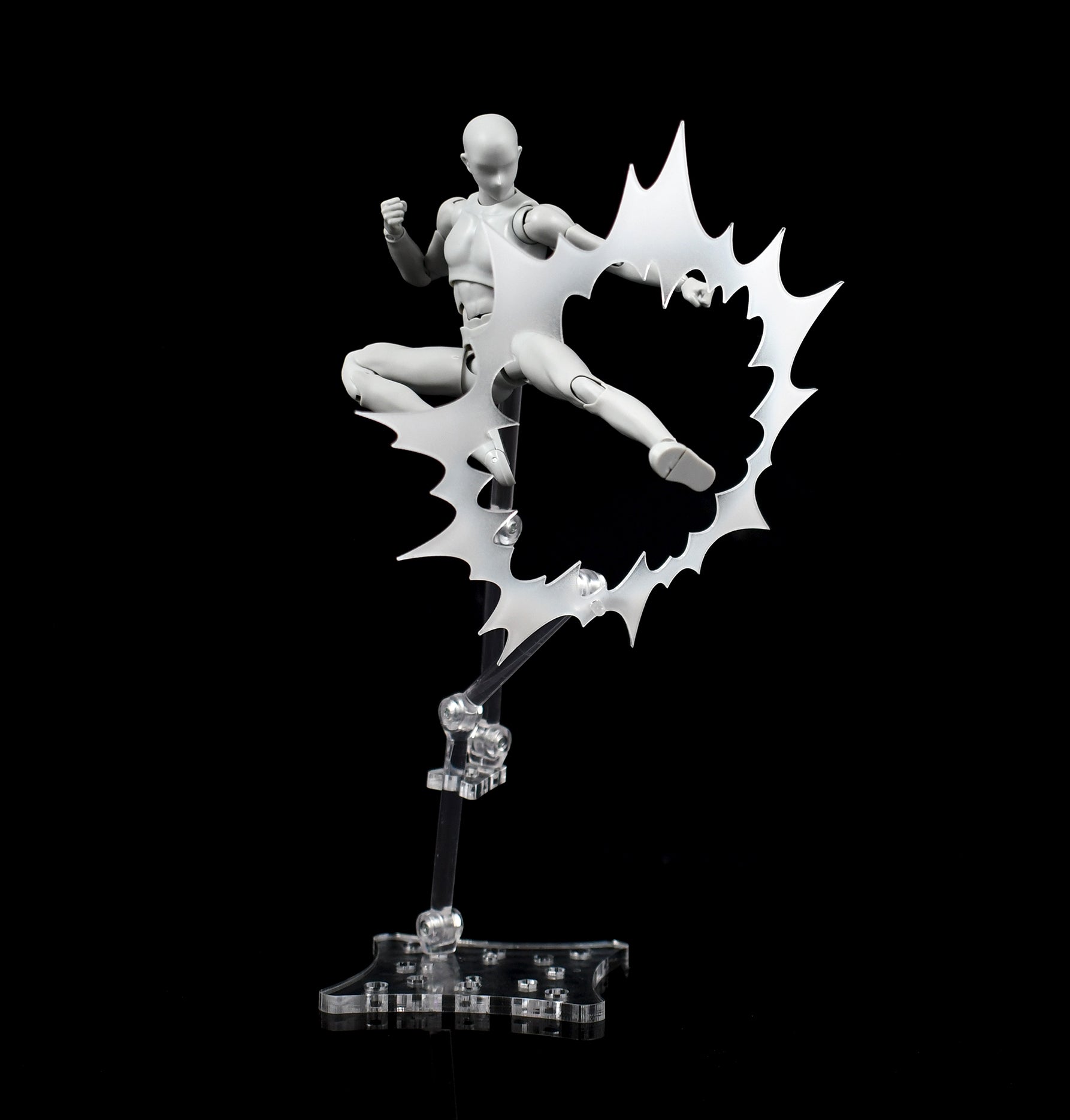 Note: These clips work best with tamashii stands. They do work with Mafex stands, though it should be noted that Mafex stand arms have a wider variance in arm diameter and even shape, and as such the fit may vary more on a Mafex stand arm.