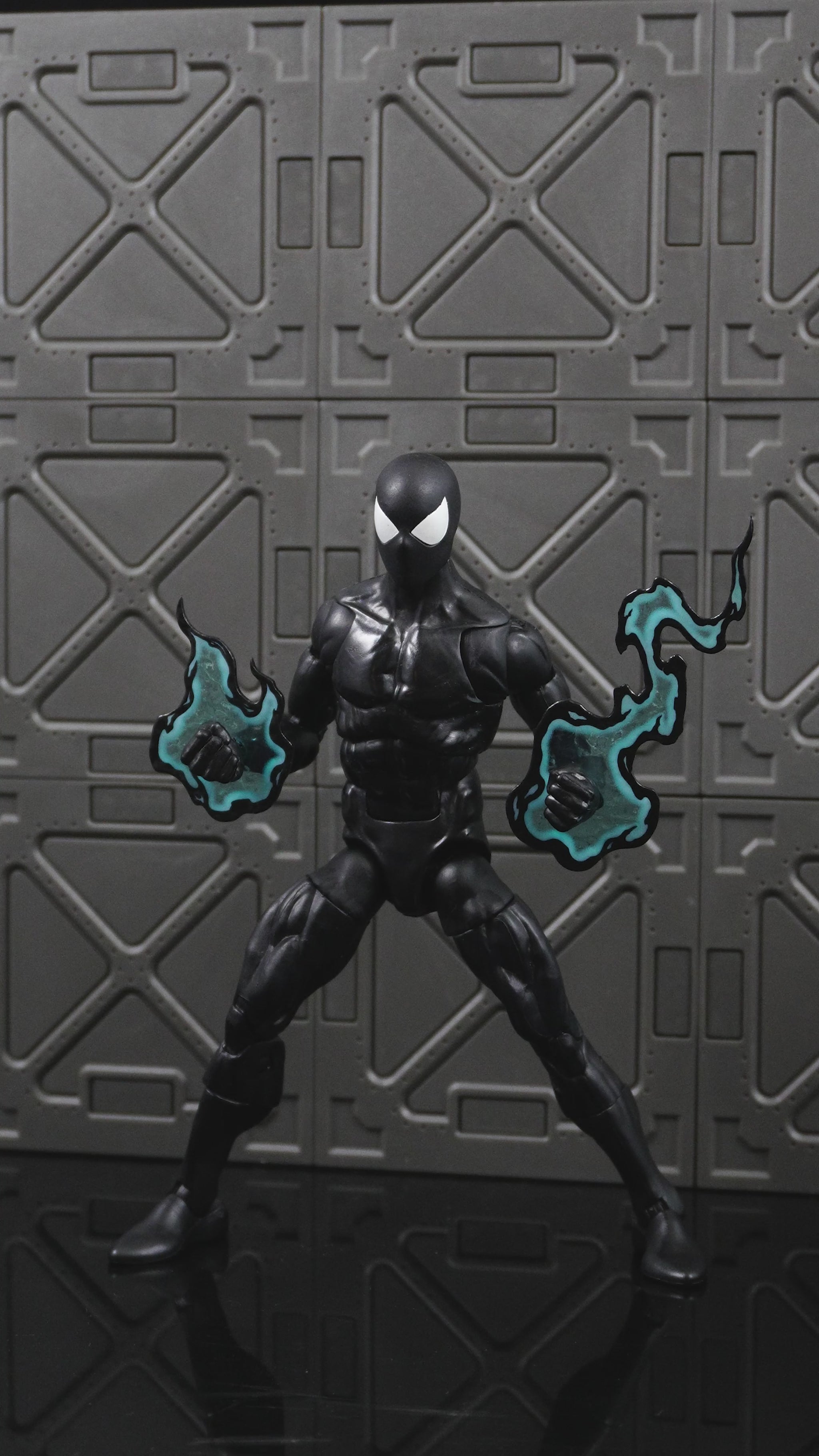 A custom made effect piece set, containing two pieces in shades of light teal/blue and black, with a distortion texture that creates the impression of movement by warping things behind it when viewed through the piece. The effect is slightly different when viewed through either side, and the pieces can be displayed either way to your preference.