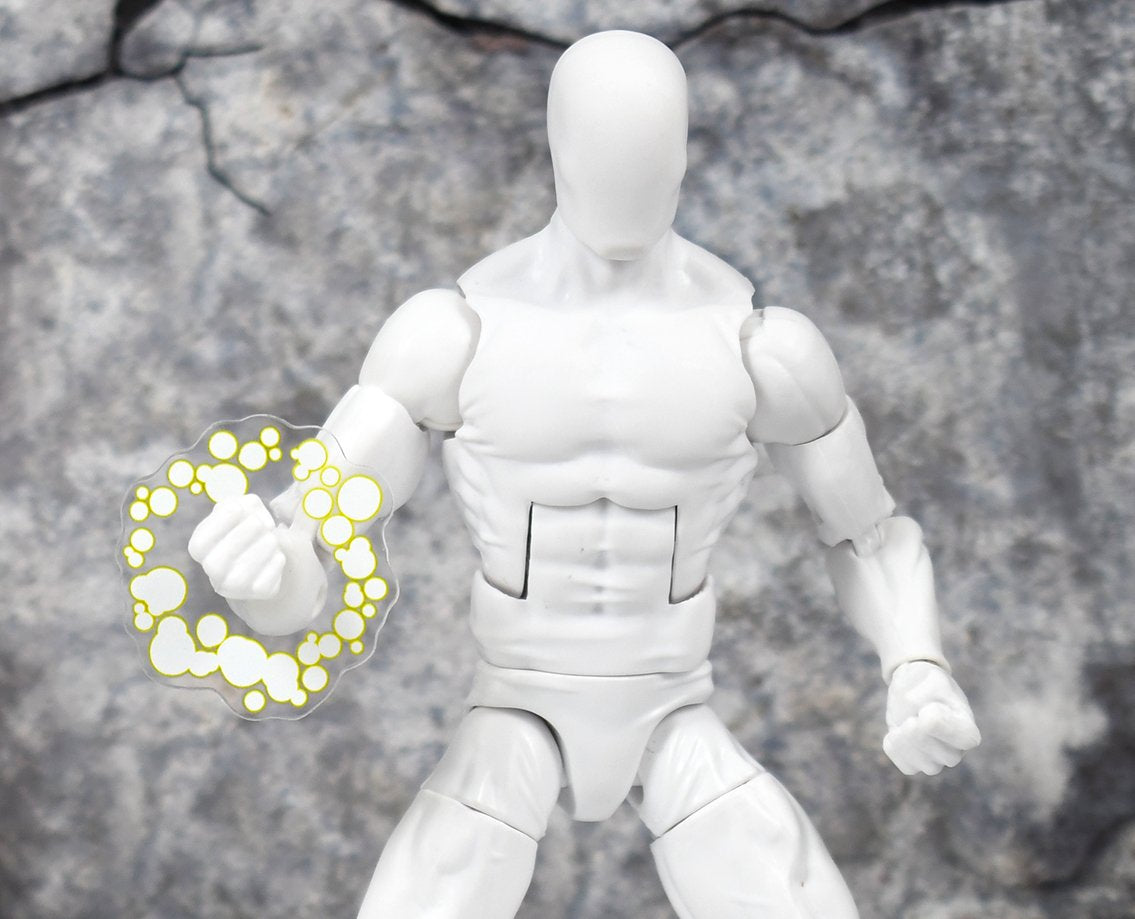 These pieces fits over a figures wrist by removing the figures hands, then putting them back on through the hole in the center of the effect. They are sized to fit most near 1/12 scale average sized figures.